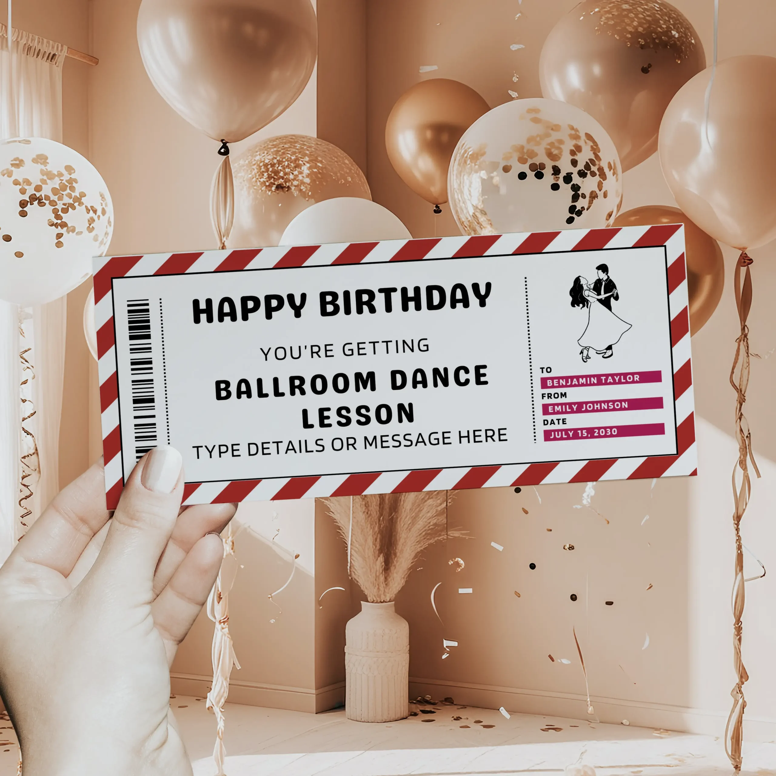 Editable Birthday Ballroom Dance Lesson Gift Certificate EDITABLE, Ballroom Dance Lesson Gift Voucher Printable, Ballroom Dance Lesson Coupon, Last Minute Birthday Gift Idea