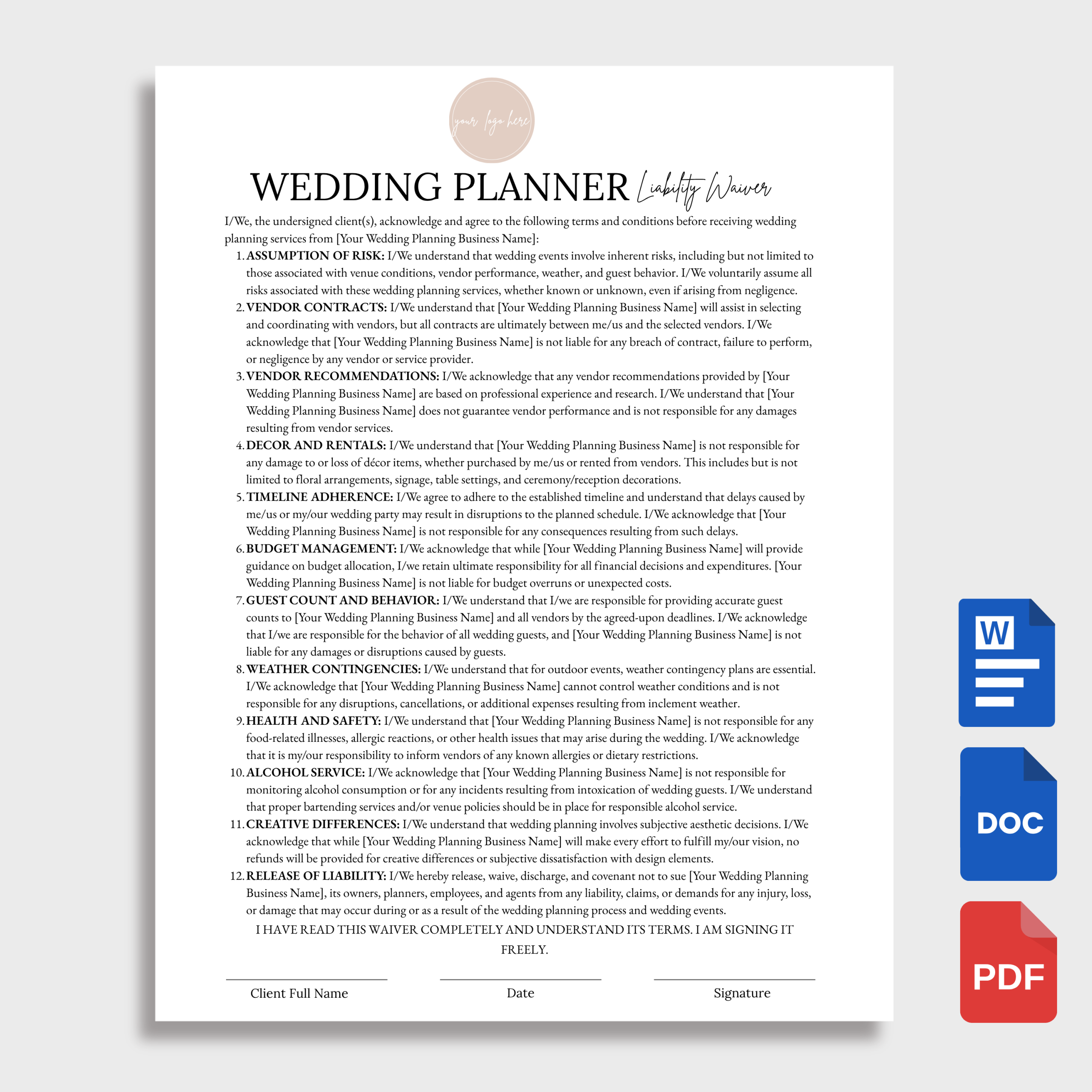 Be the first to review “Editable Simple Wedding Planner Liability Waiver” Cancel reply