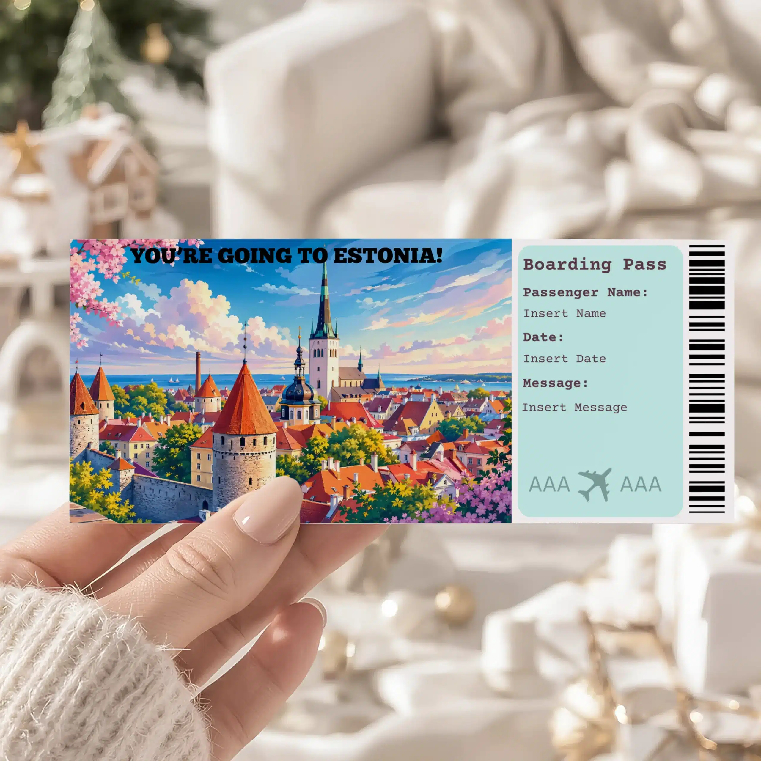 Editable Estonia Boarding Pass Template , Estonia Trip Surprise Gift Ticket, Printable Plane Ticket, Printable getaway voucher, Surprise Travel Reveal, Flight Ticket, Download, Estonia