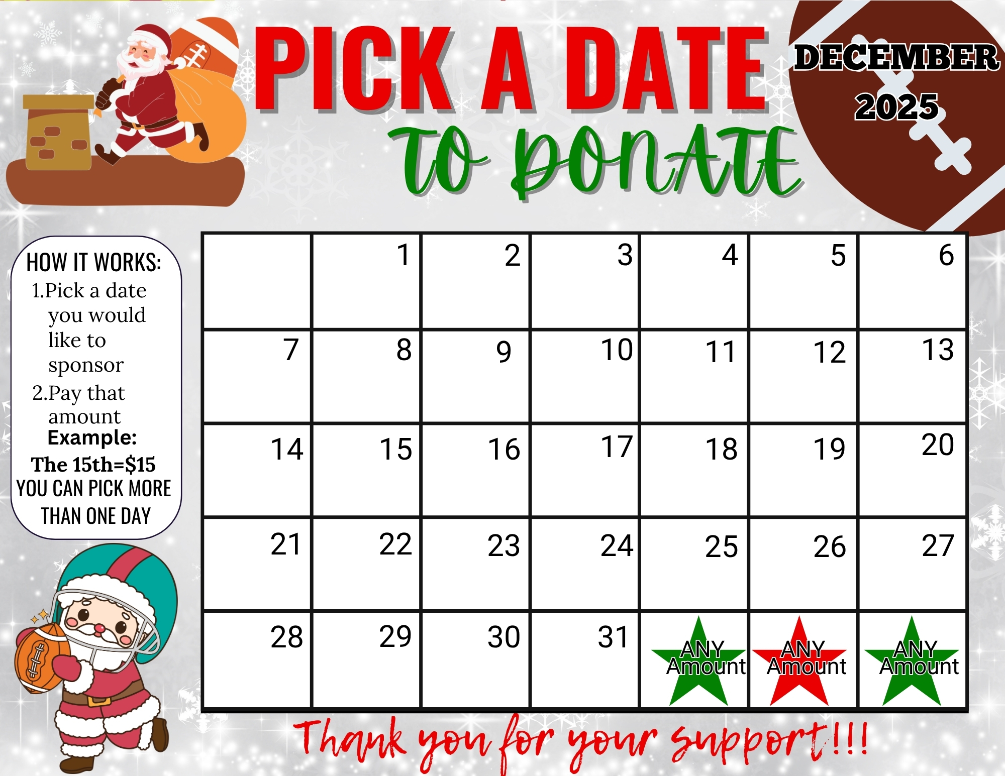 Football December Christmas Pick a Date To Donate Fundraiser (INSTANT DOWNLOAD)