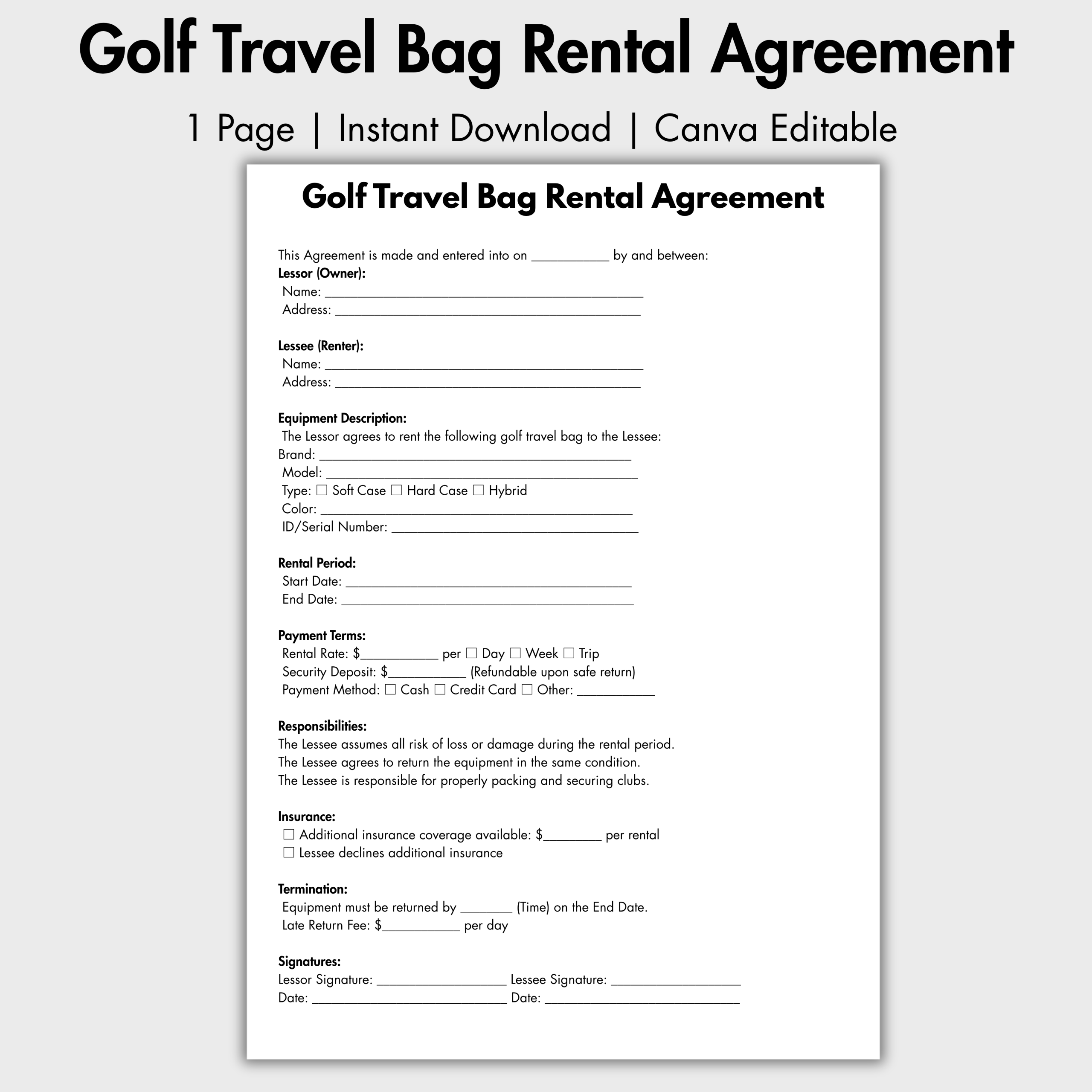 EDITABLE Simple One Page Golf Travel Bag Rental Agreement