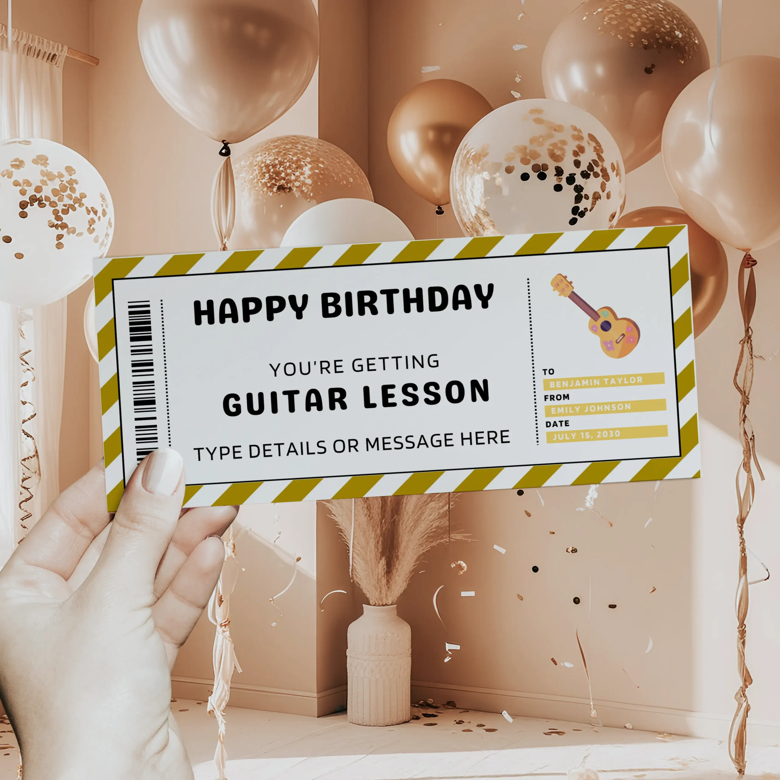Guitar Lesson Ticket Template, Editable Birthday Guitar Lesson Gift Certificate EDITABLE, Guitar Lesson Gift Voucher Printable, Guitar Lesson Coupon, Last Minute Birthday Gift Idea