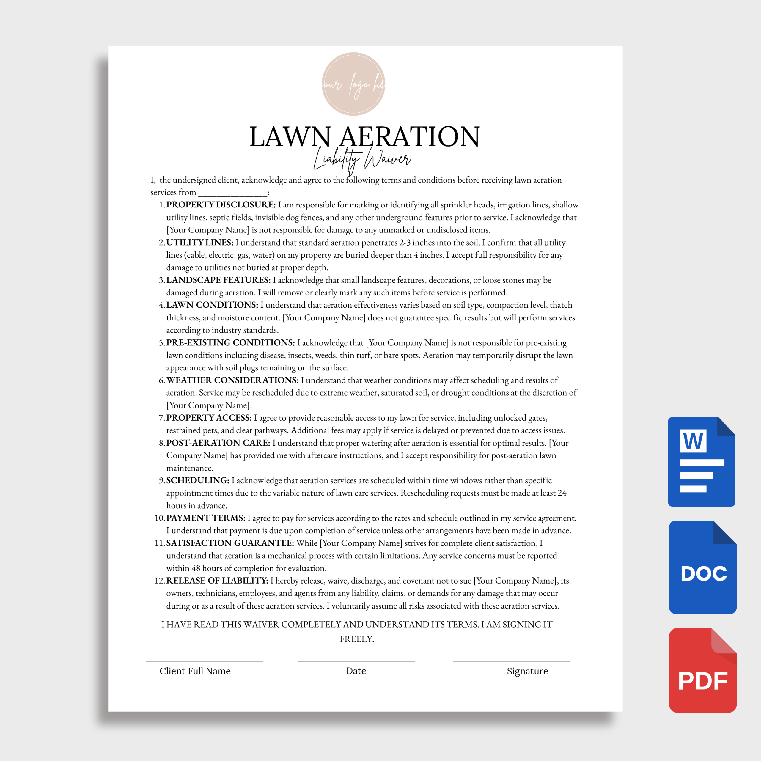 Be the first to review “Editable Simple Lawn Aeration Liability Waiver” Cancel reply