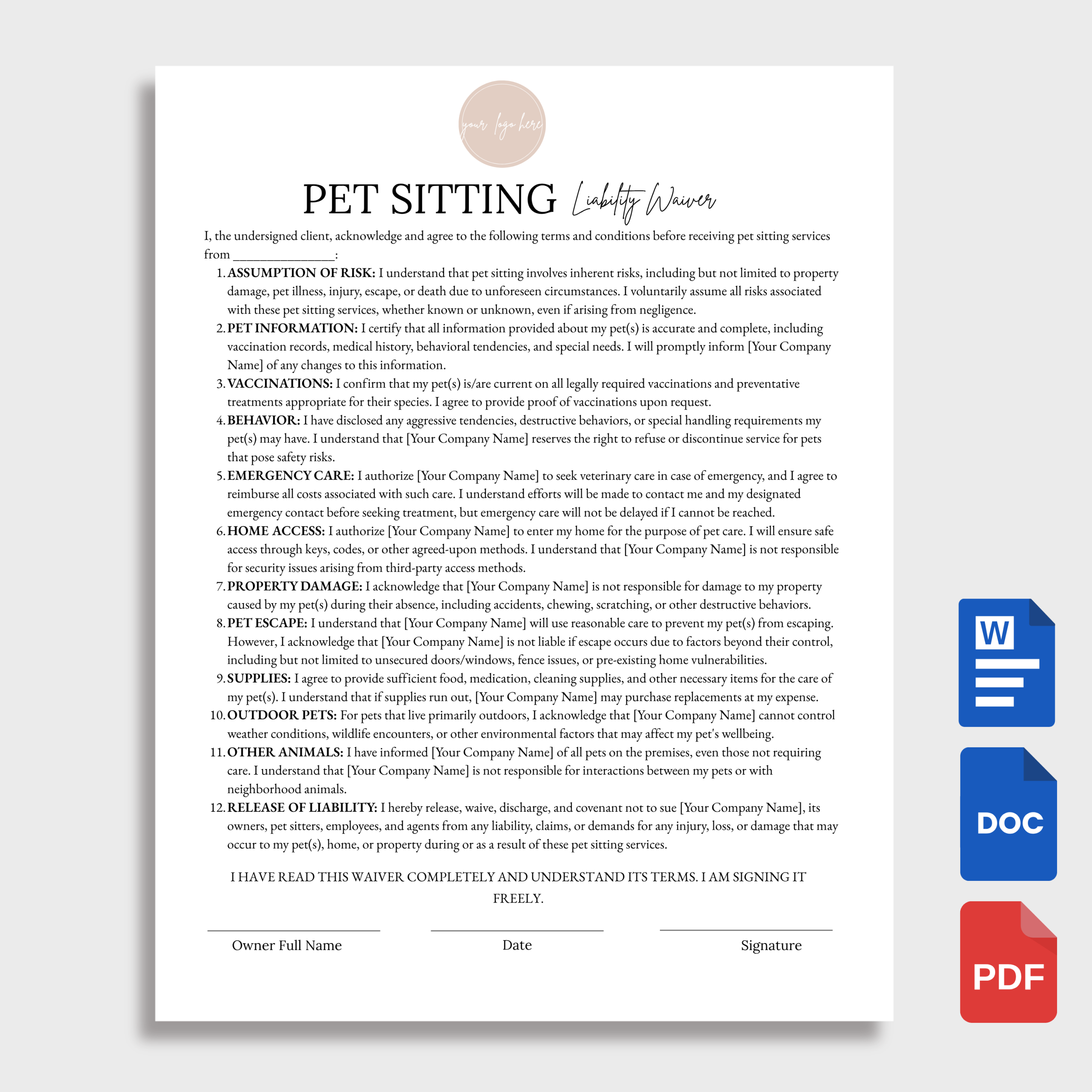 Home Liability Waiver Editable Simple Pet Sitting Liability Waiver