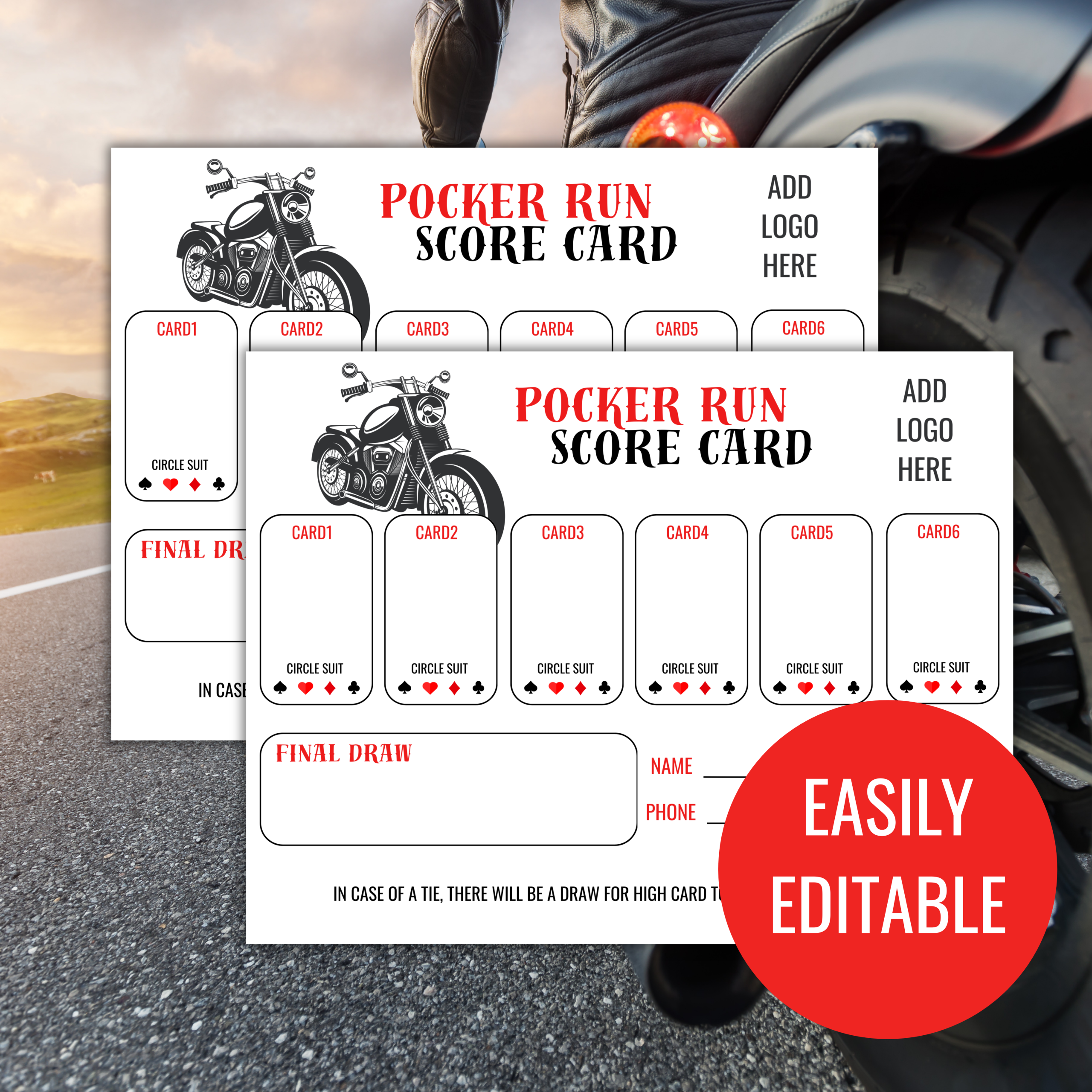 Poker Run Score Card, Motorcycle Charity Event Score Card