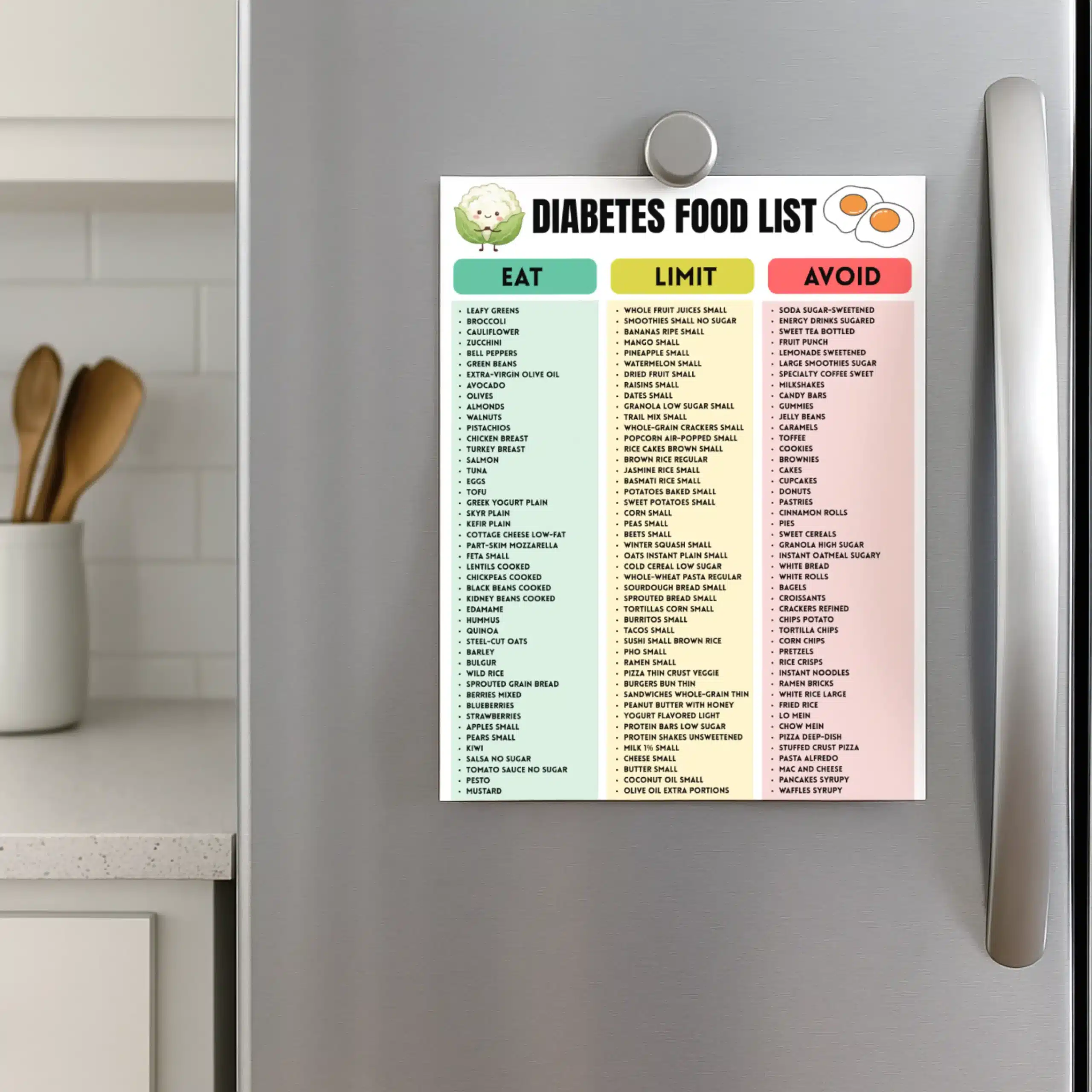 • Foods divided into Eat / Limit / Avoid sections