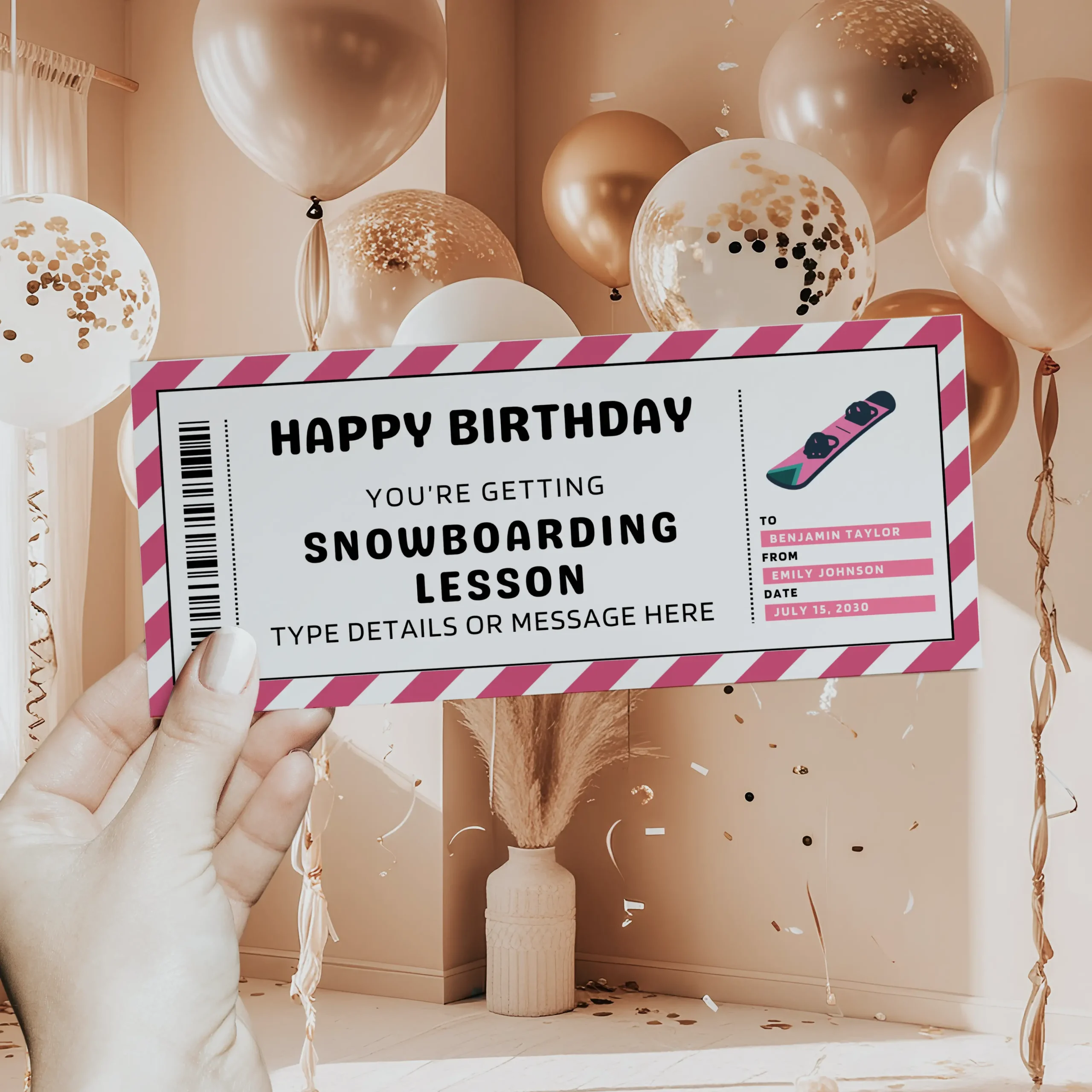 Editable Birthday Snowboarding Lesson Gift Certificate EDITABLE, Snowboarding Lesson Gift Voucher Printable, Snowboarding Lesson Coupon, Last Minute Birthday Gift Idea